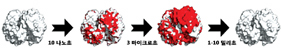 그림 3. 우리 몸의 혈관에서 산소 운반을 담당하는 헤모글로빈 단백질의 시간에 따른 구조변화