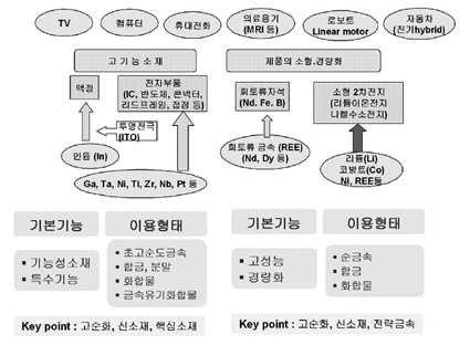 그림 4-4. 전기전자 산업의 제품과 희유금속과의 관계
