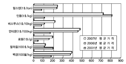 그림 4-6. 최근 희유금속의 가격 급상승 추세