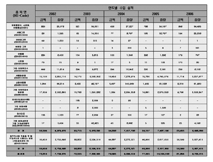 *출처 : 무역통계연보(2000년, 2004년 12월)