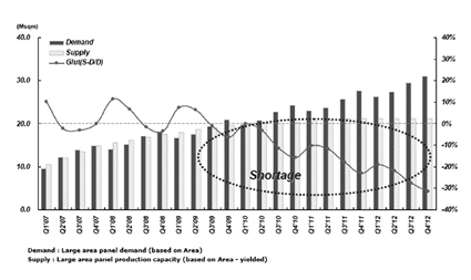 ■ 디스플레이 시장은 점차 수요와 공급간의 부조화가 점점 심화될 것으로 전망됨. 이는 수요량은 전 세계적인 소비 수준 증가에 따라 꾸준히 증가하는 반면, 공급량이 이를 따르지 못하기 때문임.