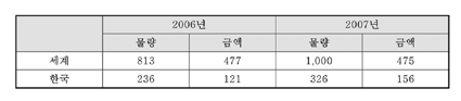 표 4-8. ITO 스퍼터링 타겟 시장현황 (단위 : 톤, 백만불)