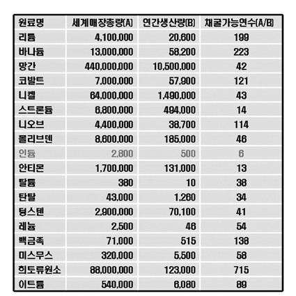 *출처 : Rare Metal (獨立行政法人産業技術總合硏究所)