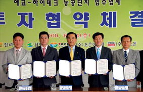 이날 투자 협약에 따라 탑선과 조은이노텍, 필스톤은 앞으로 담양 에코-하이테크 농공단지 내에 각각 100억 원과 53억 원, 45억 원을 투자하고 250여 명의 고용 창출 효과를 낼 전망. 탑선은 태양전지모듈과 잉곳, 웨이퍼 등 태양광 발전세트를 생산하며 조은이노텍은 세라믹코팅 금속흡음 천장재와 아트 타일을, 필스톤은 나노 세라믹 코팅제와 칼라골재 등을 생산하는 업체다.