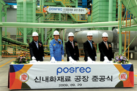 지난 9월 29일 포스렉은 이상영 사장을 비롯해 포스코 허남석 부사장, 박명길 상무, 포철기연의 정상훈 사장, 조선내화 김해봉 전무, 대덕개발 이춘부 회장 등 100여명이 참석한 가운데 신내화재료공장 준공식을 가졌다. 이번에 준공식을 가진 신내화재료공장은 포항철강산업단지 2공단내에 대지면적 1만1천927m2에 공장동 3개, 사무동 1개 건물로 구성돼 있다. 신내화재료공장은 폐내화물을 재가공해 내화물 원료로 재활용할 수 있도록 제조하는 시설이다.