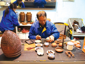 유리창琉璃廳’이 있다. 테마파크 내에 ‘상업시설’을 조성하는데 도움이 될까 한 번 들러봤다. 큼직한 자사호 조형물과 기념품 상점들..., 우리와 다른 점은 이들은 공예품 제작 과정을 공개한다는 것이다. 우리처럼 만드는 곳 따로, 파는 곳 따로가 아니라 옆에서 그 물건을 만든다. 당연히 진열만 돼있는 것보다는 옆에서 만드는 모습을 보고 물건을 살 수 있는 확률은 훨씬 높다.
