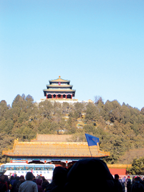 여전히 차갑고 건조한 바람을 맞으며 사람의 피가 발목까지 찼다던 ‘천안문 광장’으로 향했다. 왼편으로 자금성과 그 뒤쪽으로 경산공원이 위치해 있었다. ‘자금성’으로 더 잘 알려진 ‘고궁’은 영락제 1417년 명 태조가 남경에서 천도하면서 원의 궁성자리에 세웠다. 중국 최고의 목조건물‘태화전太和殿’이 명물이다. 자금성 뒤쪽으로‘경산공원’이 버티고 있는데, 북해공원과 고궁을 건립하면서 나온 토사를 쌓아 동산을 만들었다고 한다. ‘한쪽의 땅을 파면 한 쪽엔 산이 생긴다’는 단순한 논리는 ‘테마파크 조성’방법의 중요한 단서를 제공한다. 아울러서 발상의 전환을 갖게 한다. 경산공원의 꼭대기에는 북경 동서남북의 가장 가운데 위치