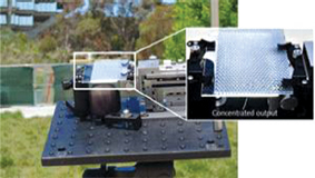 이러한 걱정을 덜기 위한 대안으로서, UCSD(University of California, San Diego) 연구진이 미세광학 렌즈 배열에 의해 집속된 햇빛을 평면 도파로를 이용하여 공유된 태양전지 셀에 결합시키는 CPV 디자인을 개발했다.