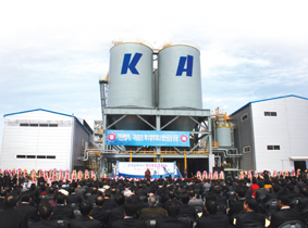 축하객들 뒤로 보이는 설비가 바로 KC주식회사의 수산화알루미늄 생산설비