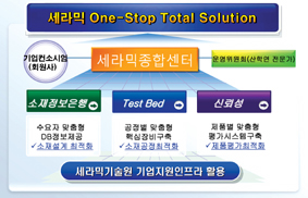 한편 이날 설명회에서 세라믹소재종합센터 구축 및 운영방안을 발표한 한국세라믹기술원 김병익 선임본부장은 “세라믹소재정보은행 200여개 회원사 등 세라믹기술원 회원사를 대상으로 한 수요조사를 통해 후막 세라믹라인, 박막 세라믹라인, 용융 세라믹라인, 극한 세라믹라인이 선정되었다”며 “세라믹기술원의 소재정보은행, 신뢰성평가분석센터 등 기업지원인프라와 테스트베드를 연계해 세라믹 One-Stop Total Solution을 실현하는 세라믹종합센터를 구축”할 계획을 소개했다.