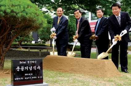 LG전자는 남용 부회장 등 회사 임원 및 노조 관계자 등 100여명이 참석한 가운데 경북 구미시 공단동에서 태양전지 라인 준공식을 가졌다고 지난달 18일 밝혔다.