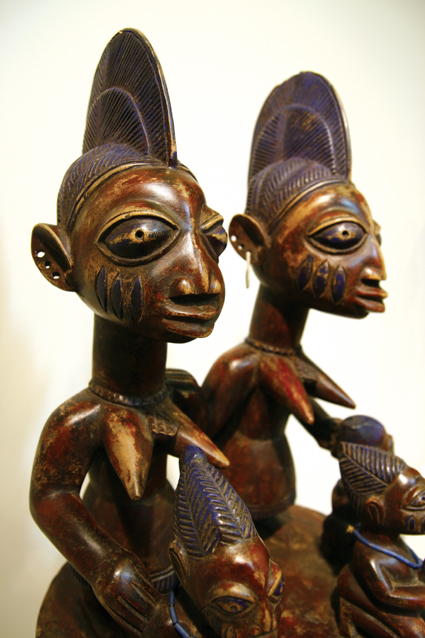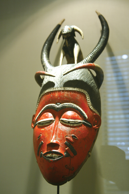 4. 「베닌 청동두상」 청동 35cm 나이지리아. 얼굴의 긴 줄무늬는 왕의 얼굴을 가린 베일을 묘사한 것이고 입주위의 구멍은 수염을 달기위한 것이다.