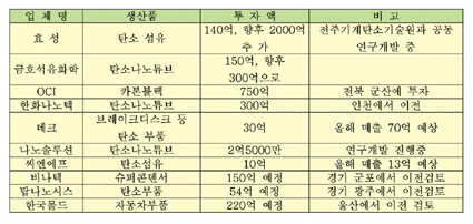 이밖에도 LG화학, GS칼텍스 등 주요 대기업들이 신사업인 탄소소재 시장에 잇따라 진출하고 있다.