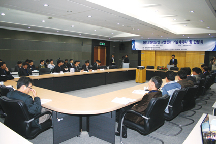 이날 발표는 ‘반도체 제조 장치용 Fine Ceramics 부품 동향과 상생협력방안’에 대한 보부하이테크(주) 서병주 부사장의 설명으로 시작됐다. 서 부사장은 “국내 파인세라믹스 제품의 문제점은 원료와 소재가 부족하며 이를 이용한 응용기술(M.B.C)이 부족하다”며 “소재 개발이 막대한 자금과 장기적인 기술 개발임을 감안하면 대기업 위주의 원료개발이 요구되며 정부, 협회 차원의 중장기 발전 전략과 실행시스템 구축이 필요하다”고 말했다. 그러면서 “실제 유저와 연결되어 Just In Time 제품개발이 필요하고 그에 대응한 실질적인 연구비, 연구인력 및 장비 지원이 필요하다”고 덧붙였다.