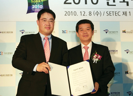 KC 박주봉 대표가 지난 11월 30일 열린 무역의 날 시상식에서 금탑산업훈장을 받았다. 박 대표는 지난 2001년 공기업인 한국종합화학을 인수한 후 경영혁신 및 꾸준한 기술개발, 해외시장 개척으로 10년 만에 90억원대에 불과했던 매출을 1,000억원대로 끌어 올려 공기업 민영화의 성공사례로 주목을 받아왔다.