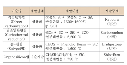 표 1. 초고순도 SiC 분말 해외 기술개발 현황