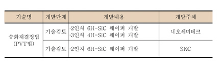 표 5. 단결정 웨이퍼의 국내 기술개발 현황