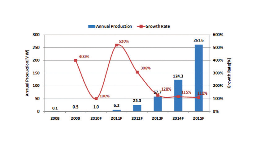 태양광 시장이 지난해 16.5GW에서 올해 20GW 이상의 시장이 형성되면서, 고효율, 저가격대의 차세대 태양전지 개발에 대한 기업들의 투자가 활발히 진행되고 있고, 3세대 태양전지로 일컬어지는 염료감응태양전지에 대한 개발 역시, 한국, 일본 기업들을 중심으로 꾸준히 개발돼 상업화를 눈앞에 두고 있다.