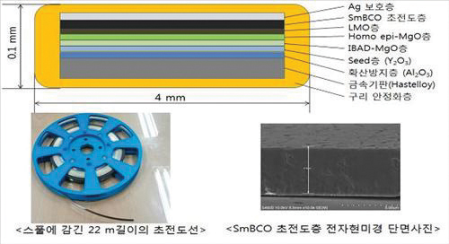 오 박사팀은 일본이나 미국에서 사용하는 레이저 및 화학 증착 공정이 아니라, 금속기판 위에 여러 금속 원소들을 증발시켜 초전도층을 덧씌우는 ‘동시증발법(EDDC)’을 통해 이 초전도선을 제작했다.