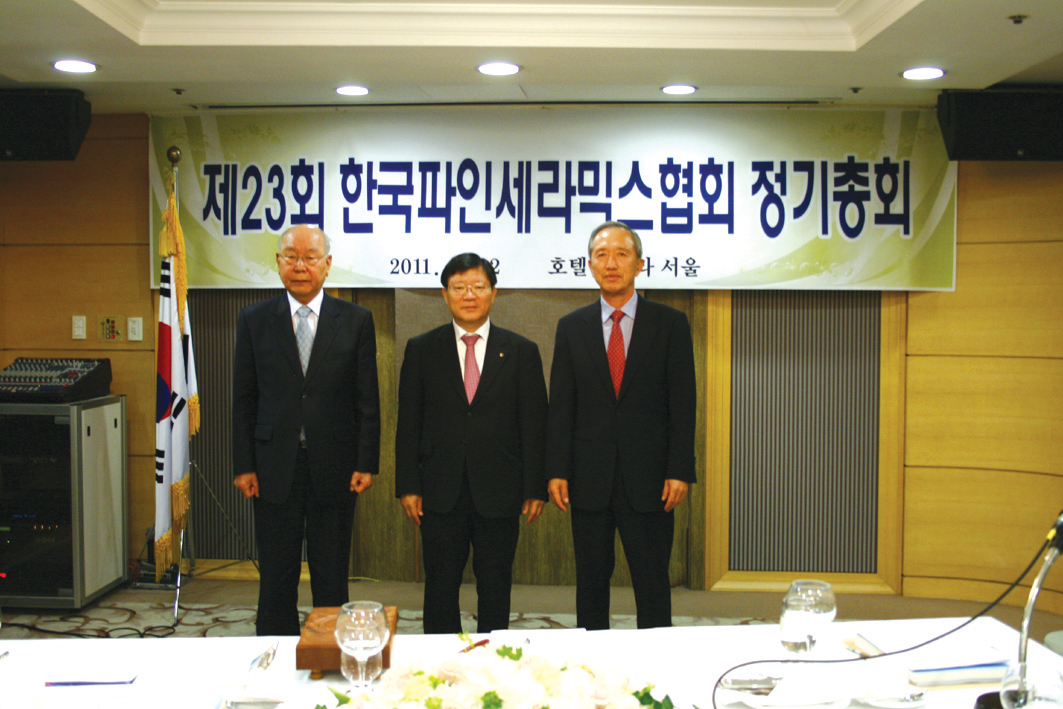 한국파인세라믹스협회의 신임회장에 쌍용머티리얼 이영조 대표가 만장일치로 추대됐다. 지난달 22일 서울 리베라호텔에서 개최된 정기총회에서 전임 정무수회장은 “포럼 결성 등을 통해 마련되고 있는 세라믹산업 발전의 기회를 살리기 위해서는 보다 능력있는 분을 협회장으로 모시고자 한다”며 전격 사의를 표명했다. 지난해 3년 임기의 회장직을 연임하면서도 임기 중이라도 후임 회장을 모시는 대로 사퇴하겠다던 정무수 회장의 바램이 이루어지게 됐다. 바로 쌍용머티리얼 이영조 대표가 정무수 회장의 삼고초려 끝에 마음을 움직였기 때문이다. 그리고 이날 총회를 통해 이영조 대표는 참석회원의 만장일치로 한국파인세라믹스협회의 신임회장으로 정식 추대. 신임 이영조 회장은 “전임 정무수회장님과 회원사들의 협조를 통해 대한민국 파인세라믹산업의 발전에 일조할 수 있도록 최선을 다할 것”이라며 취임사를 밝혔다. 한편 이날 총회에서는 조선내화 양삼열 대표가 부회장으로 YJC 배지수 대표가 신임이사로 각각 선출됐다.