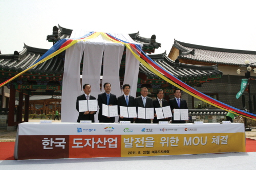 경기도는 한국세라믹기술원, 이천시, 광주시, 여주군과 함께 지난달 2일 국내 최대 도자쇼핑몰인 여주 ‘도자세상’ 개관식장에서 ‘한국 도자산업 발전을 위한 MOU’를 체결했다.