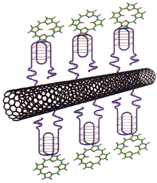 그림 1. 광합성과정과 유사한 방식으로 전력을 생산해 내는 ‘탄소나노튜브-바이오분자’ 자기조립물질