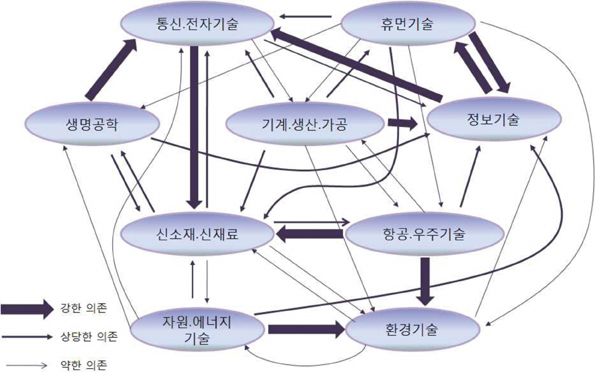미국은 2002년의 발표를 통해 융합기술을 NT, BT, IT, CS의 4가지 첨단기술 간에 이루어지는 상승적 결합으로 한정한 반면 EU는 미국의 NBIC 이외에 인문사회를 포함하는 포괄적 범위를 융합기술로 설정하여 국가적인 핵심기술분야로 인지하며 적극적으로 추진하고 있다. 또한, 일본은 NT, IT, BT의 신기술 융합혁신을 통해 7대 신성장산업(연료전지, 정보가전, 로봇, 컨텐츠, 헬스케어, 환경에너지, 비즈니스 지원 서비스)을 집중 지원하는 ‘신산업 창조전략 2004’와 4대 중점분야 중 단기간에 실용화가 가능한 기술 위주의 개발전략인 ‘Focus 21’을 수립하여 추진하고 있다. 그에 반해 우리나라는 국내 과학기술 역량과 경제사회적 관심을 고려한 NT, IT, BT를 위주로 하는 개념을 수립하였으나 우선은 반도체, 무선이동통신, 디스플레이 등 산업 경쟁력이 높은 IT를 중심으로 융합화가 전개되고 있는 상황이며 디자인/인지과학 등 인문계통과 접목되는 융합화의 패러다임도 함께 개념을 설정하여 추구하기 시작하는 단계이다.