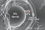 TRISO UO2 피복입자는 구상 UO2 kernel 주위를 약 90μm 두께의 다공성 열분해 탄소(PyC) 완충층(buffer layer)으로 둘러싸고, 다시 그 바깥 주위를 40μm 두께로 치밀화 PyC 층으로 에워싸고, 치밀 PyC 층의 외각을 치밀한 SiC(혹은 ZrC) 층으로 감싸며, 그 외각을 다시 치밀한 PyC 층으로 둘러싼 구조를 하고 있다. 완층 PyC 층은 핵분열 파편으로 인한 외각 치밀 PyC 층의 손상을 막아 주며, 핵분열 물질로부터 발생된 기체 생성물을 담아 외부로 가해지는 압력을 완화해 주는 역할을 한다. 치밀한 PyC 층은 핵분열 생성물이 외부로 방출되지 못하도록 하는 역할을 한다. 치밀한 SiC 층은 핵분열 생성물을 차단하는 역할과 기계구조적인 특성을 부여하며, 가장 외각의 치밀 PyC 층은 치밀 SiC 층에 대한 외부로부터 기계적 혹은 화학적 침부식을 방지해 주는 역할을 한다. SiC 층의 안쪽 치밀 PyC 층을 inner pyrolytic carbon(IPyC) 이라 하고, 바깥 쪽 치밀 PyC 층을 outer pyrolytic carbon (OPyC) 라고 하며, 이 PyC 층들은 조사에 의한 수축이 발생하기 때문에 등방성(isotropic)을 지녀야 한다. 고온에서 핵분열 생성물 담지와 관련하여 SiC 층을 ZrC 층으로 대체하려는 방안도 있다. TRISO UO2 피복입자를 그림 9에 나타내었다.