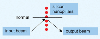 중국과 미국의 이론 물리학자들은 일직선의 실리콘 나노기둥에 빛추어진 적외선 빛은 전혀 반사되지 않고 물질을 통해서 전파되면서 90도로 휠 수 있다는 것을 발견하였다.