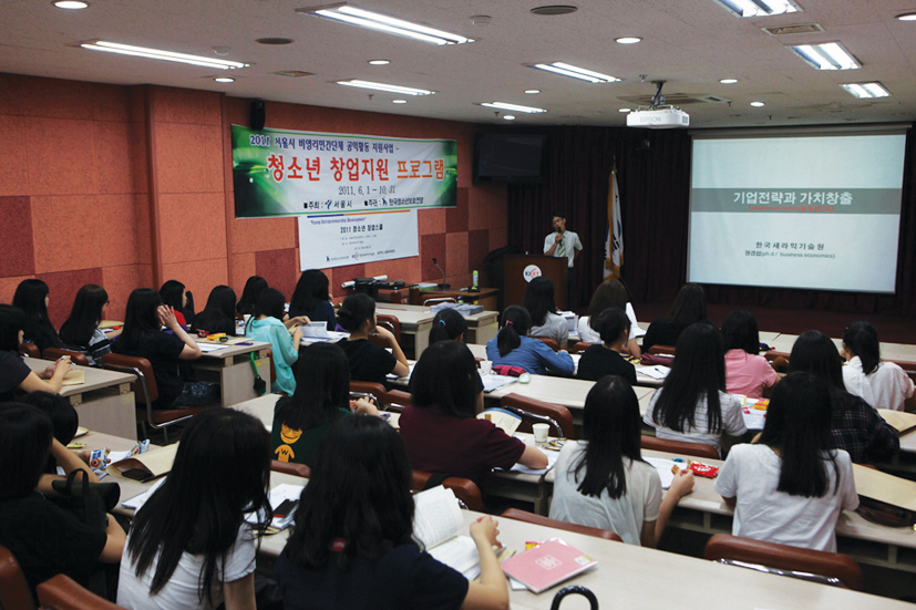 세라믹기술원은 지난 7월 29일 서울 미림여자고등학교 학생들을 대상으로 2011 청소년 창업스쿨 “Young Entrepreneurship De-velopment Course”를 서울 본원에서 개최했다. 이번 행사는 청소년에게 직업탐색 및 체험학습을 장려하여 적성 흥미 능력에 맞는 올바른 진로 선택을 도와주고, 청소년 창업의 절차, 방법, 청소년 창업기업 현지 참관 등 밀도 있는 체험학습을 장려하여 직업적 소양 및 건전한 직업관을 육성하기 위해 서울시와 한국청소년보호연맹이 주최하고 한국세라믹기술원 세라믹스 창업보육센터에서 주관한 행사다.