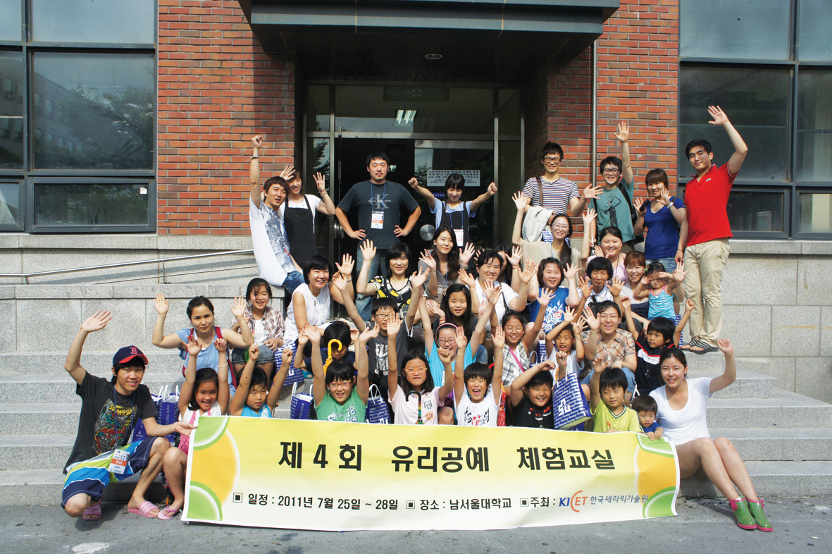한국세라믹기술원(KICET, 원장 김경회)은 여름방학을 맞이하여 “유리공예 체험교실”을 금천구 지역내 다문화 가정, 유관기관 및 기술원 직원 자녀, 가족들을 대상으로 지난 7월말 나흘간의 일정으로 남서울대학교 환경조형학과에서 실시했다.