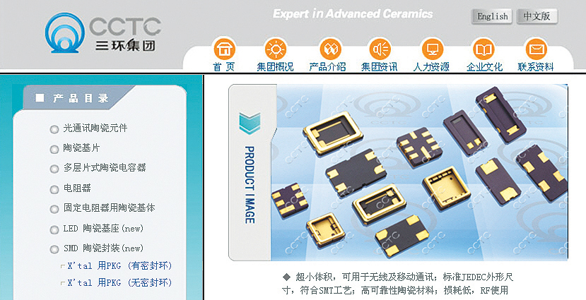 HTCC package와 같이 적층공정과 전극인쇄공정이 들어가는 제품군의 신모델도 생산중이다. CCTC는 중국내에서 알루미나 기판 및 HTCC와 같은 알루미나 패키지 분야에서는 제일 규모가 큰 업체로 최근의 LED 산업의 추세와 중국내 크리스탈 패키지 품귀현상에 맞추어 HTCC 시장에 중국업체중에서 제일 먼저 진입하여 중국내 시장을 이끌고 있다.