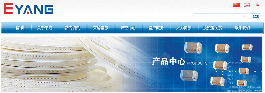 2001년에 설립된 E-Yang은 광동성 Shenzhen시에 위치한 MLCC 제품만 생산하는 전문업체로 제조기술력은 중국내에서 단연우수한 면모를 가지고 있다. Ni 전극을 사용한 고용량 X7R 모델에서부터 0.6x0.3mm 사이즈의 작은 제품군까지 다양한 모델의 MLCC를 제조하고 있다.