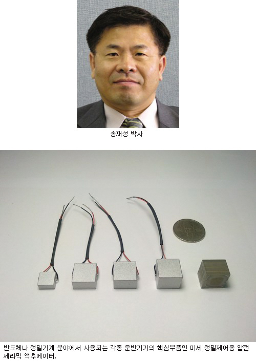 송 박사팀은 5년여의 연구 끝에 낮은 온도에서도 쉽게 제조(저온소성)할 수 있는 고변위 압전소재를 자체 기술로 만드는데 성공했다. 이를 토대로 고성능 적층형 압전 액추에이터와 대변위 압전 액추에이터의 공정기술을 개발?보유하게 됐다.