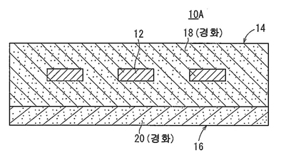 제1 세라믹 적층체(10A)는, 도체 성형체(12)를 갖는 제1 세라믹 성형체(14)와 제2 세라믹 성형체(16)가 적층되어 구성되어 있다. 제1 세라믹 성형체(14)는, 열경화성 수지 전구체와 세라믹 분말과 용제가 혼합된 제1 슬러리(18)를, 도체 성형체(12)를 피복하도록 도포한 후에 경화함으로써 얻어진다. 열경화성 수지로서는, 예컨대 폴리우레탄 수지를 사용할 수 있다. 제2 세라믹 성형체(16)는, 열가소성 수지와 세라믹 분말과 용제가 혼합된 제2 슬러리(20)를 경화함으로써 얻어진다. 열경화성 수지로서는, 예컨대 폴리올레핀 수지를 사용할 수 있다.