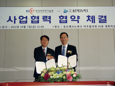 한국세라믹기술원(원장 김경회)과 (재)송도테크노파크(원장 이윤)가 지난달 7일 송도테크노파크에서 나노·바이오 산업 관련 기술교류 및 지원, 협력을 추진하는 내용을 골자로 한 업무협약서(MOU)를 체결했다.