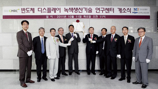 고려대학교는 지난달 11일 하나스퀘어 대강당에서 ‘반도체·디스플레이 녹색생산기술연구센터(GMRC : Green Manufacturing Research Center)’ 개소식을 개최했다고 밝혔다. 개소식에는 김병철 고려대 총장, 김재홍 지식경제부 성장동력실장, 정경원 정보통신산업진흥원장 등이 참석했다.