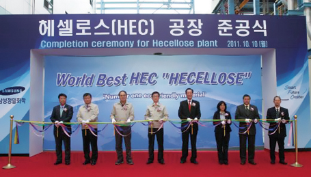 삼성정밀화학, 도료용 헤셀로스(HEC) 상업생산 삼성정밀화학은 지난달 10일 울산사업장에서 도료용 헤셀로스(HEC) 공장 준공식을 하고 신규제품인 HEC(브랜드명 HECELLOSE) 상업생산을 시작했다고 밝혔다.