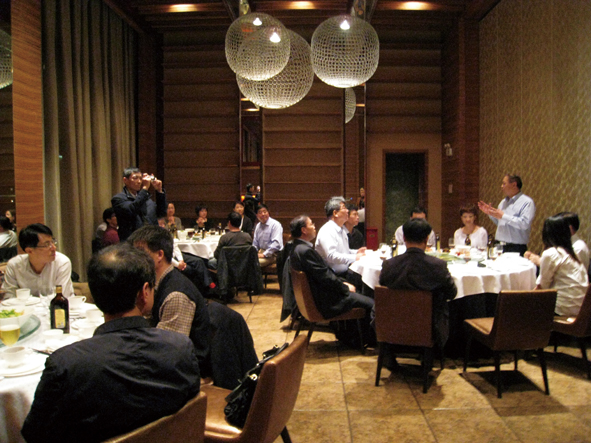 간담회 이후 연구시설 및 전시장을 견학한 후 SICCAS에서 마련한 환영만찬 장소로 이동하여 2차 기술인적교류회를 가졌다. 오늘 아침 일찍 일어나 하루종일 강행군(?)을 하였고, 내일은 오늘보다 더 바쁜 일정이 기다리고 있는 일행들을 위하여 어제 실시하지 않았던 발 맛사지를 하고 하루 일정을 마무리 하였다. 내일은 더 힘들텐데............