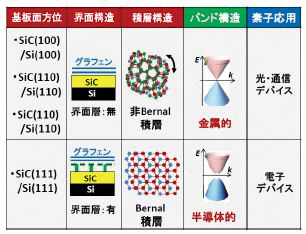 국립대학법인 도호쿠대학 전기통신연구소 연구그룹과 독립행정법인 과학기술진흥기구 전략적창조연구추진사업의 “차세대 일렉트로닉스 디바이스의 창출에 관한 혁신재료 프로세스 연구” 연구영역에서의 연구과제인 “그래핀 온 실리콘 재료, 디바이스 기술의 개발”의 일환으로 독립행정법인 일본원자력연구개발기구 양자빔 응용연구부문과 재단법인 고휘도광학연구센터 이용연구촉진부문의 연구그룹은 공동으로 실리콘 기판 위에 성장시킨 차세대 전자재료 그래핀의 Si 기판 면방위에 의한 다기능화(금속성, 반도체성의 구분)에 성공하여 차세대 전자재료 그래핀을 이용한 전계효과 트랜지스터의 집적화도 가능하다는 것을 나타내었다. 현재 반도체 집적기술을 이용한 그래핀의 다기능화, 집적가능성을 나타낸 것은 그래핀의 다기능 집적회로 분야의 발전에 의미 있는 획기적인 성과이다.