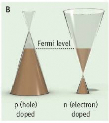 [그림 2] 두 영역의 그래핀에 대한 에너지 분산 모식도