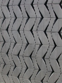 위에 제시된 이미지를 살펴보면 타일의 입체감을 볼 수 있다. 내・외장에 모두 접목할 수 있는 것으로 실내에서는 수분 조절 기능, 냄새제어 등 여러 실생활에 필요한 기능을 접목시켜 활용할 수 있으며 외장에서는 에너지 효율을 높일 수 있는 태양열이나 태양광 패널을 접목시켜 활용할 수 있다. 또한 기능적인 부분과 시각적인 질감 이외에도 하나의 오브제이지만 각도에 따라서 다르게 보이는 다양함과, 빛의 깊이에 따른 명암의 의도적 연출이 가능하다. 물론, 평면 타일에 비해 먼지와 오염에 약하다는 치명적인 단점도 있지만 현재 일본과 독일에서 개발된 표면처리 기술을 통해 입체타일이 상용화 되었을 시의 어려움은 충분히 보안 할 수 있다고 생각한다.