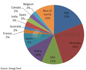 EnergyTrend의 추정을 기반으로 2011년 전세계 태양발전 설비용량은 19 GW에 도달할 것으로 예상된다. 그러나 반제품 및 완성품을 포함한 전체 설비 재고량은 최대 10 GW에 달한다. 따라서 태양발전 시장은 아직도 심각한 공급과잉을 겪고 있다고 말할 수 있다. EnergyTrend는 태양발전 시장의 수요가 2012년쯤에 대략 19 GW에 도달할 것으로 예상하였다. 이러한 성장 없는 수요는 유럽의 보조금 정책 변경으로 인한 이탈리아, 독일, 영국에서의 수요 감소 때문이다.