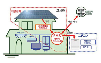 따라서 일본 국내 시장 점유율 2 위의 쿄세라와 니치콘이 태양광 발전에 세계 최대의 삼성 SDI (Samsung SDI Co, Ltd) 사의 리튬 이온 배터리를 채용한 축전 시스템을 더한 새로운 시스템을 개발하였으며 효율적으로 컨트롤하는 것이 가능하다. 향후, “재생 에너지” 태양광 발전 시스템, “축적 에너지”의 축전 시스템을 연계시켜, 교세라의 에너지 관리를 통해 가정 에너지를 보다 효율적으로 운용하는 시스템을 실현하였다.