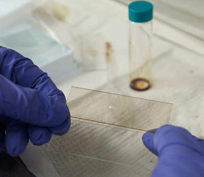 그림 1. 유리 슬라이드 위에 구현된 액체 태양전
