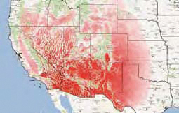 <그림> 미국 남서부지역의 태양에너지량을 나타내고 있는 NREL interactive altas의 스크릿샷. 태양에너지량의 단위 : kW-h/m2-day