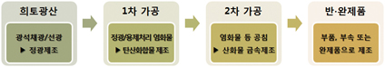 예를 들면 불화탄산염 광석에 배소 후 염산을 침출시키면 세륨산화물이 발생되고, 이는 반도체 웨이퍼의 연마제로 활용이 가능하다. 한편 희토류의 정련과정으로 통해 생산된 희토류 원소는 다시 산화과정을 거치면 순수한 희토류 산화물로서 구조재료 및 이동통신용 전자재료의 첨가제로서 활용이 가능하다. 이는 희토류가 금속과 세라믹스의 원료산업을 연결하는 중요한 매개체로서 활용이 가능한 장점을 지니고 있다는 점으로 희소금속과 희토류의 상호연계성을 중심으로 한 희토류 원료산업과 활용산업 군을 연계한다면 상호 시너지를 바탕으로 한 신산업 군을 창출할 수 있다는 가능성을 시사한다.