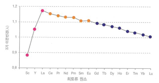 첫 번째로 희토류 원소는 란타늄으로부터 루데늄 까지 란타늄 계열을 살펴볼 경우, La는 4f 궤도에 전자가 들어 있지 않지만 Ce 부터는 4f 궤도에 전자가 1개부터 들어가기 시작해서 루데늄에서 전자가 모두 채워진다. 이러한 4f 궤도의 전자는 외부의 영향으로 4f 궤도의 전자스핀 배열이 변해서 강자성을 나타내든가, 또는 4f-5d 궤도의 전자 천이로 인해서 형광체나 레이져 발진 특성을 발현하기도 한다.