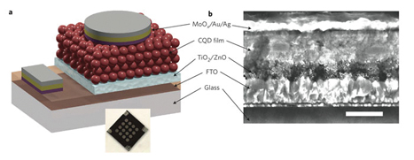 캐나다의 토론토 대학(University of Toronto)과 사우디아라비아의 KAUST의 연구진은 콜로이드 양자점 박막으로 7%의 기록적인 효율을 가진 태양전지를 만들었다. 이것은 콜로이드 양자점을 기반으로 한 이전 장치보다 거의 40% 더 높은 효율이다.