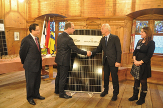 한화큐셀은 스위스 다보스의 다보스 타운홀에서 홍기준 한화케미칼 부회장과 토마스 라트 한화큐셀 마케팅 담당 임원, 타르치시우스 카비첼 다보스시장 등 관계자들이 참석한 가운데 태양광 모듈 기증식을 가졌다.